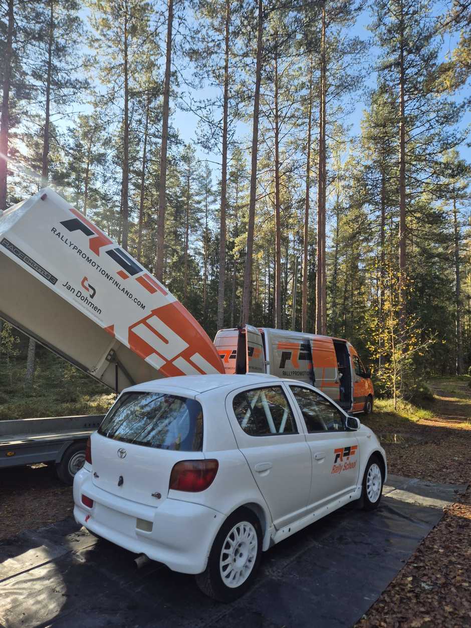 Rallikoulu palvelee tietenkin myös suomeksi ja toivotamme ryhmät ja kaveriporukat tervetulleiksi kokeilemaan ralliautoilua!